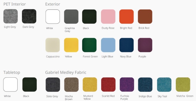 | Interior sustenabil (Sustainable Interior) Panouri acustice din poliester (PET) eco-inovativ, instalate in toate modelele Kolo. Interiorul PET este certificat de SCS Global Services pentru continut reciclat si utilizeaza minimum 50% fibre din poliester reciclat post-consum. |